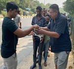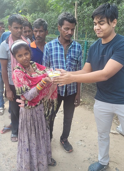 SRCC collegemate sponsors Midday meal at Sikanderpur chowk. 25 Oct.,25