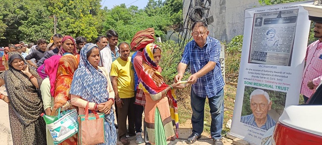 Food distribution in memory of my childhood friend KC Menon's revered mother at Sikanderpur chowk. 27 Aug.,24