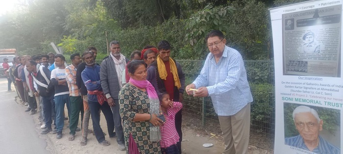 Mr Rajoo Goutam (from the UK) sponsored today's midday meal at Sikanderpur chowk. 30 Nov.,23