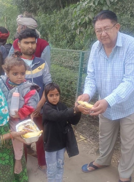 Distributing food to 100+ hungry, unemployed labourers at Sikanderpur chowk,GGN. 10 Dec.,24