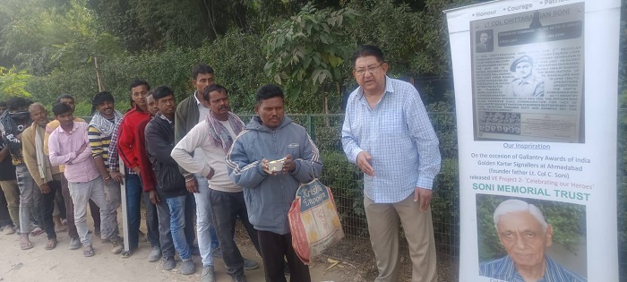 Mid day meal distribution to labourers at Sikanderpur chowk, Gurgaon. 24 Dec., 2022