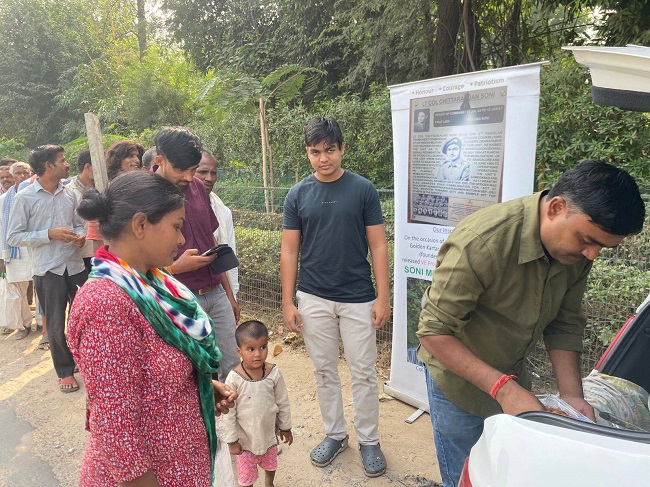 1st installment of midday meal distribution at Sikanderpur chowk, Gurgaon. 11 Feb., 2023
