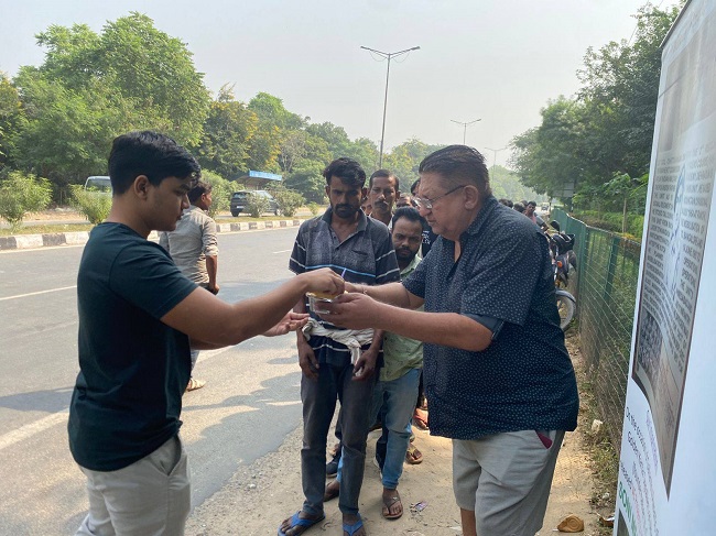 Mid day meal distribution to labourers at Sikanderpur chowk, Gurgaon. 31 Oct., 2022